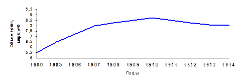 Кредитная история России началась в 1769 г., когда Екатерина II сделала первый заем в Голландии. За последующие два с половиной столетия Российская империя заняла на рынке примерно 15 млрд. руб. Большая часть этих средств накануне революции была погашена. К этому моменту старейшими займами в составе русского государственного долга оставались 6%-ные займы 1817-18 гг. Их нарицательный капитал составлял 93 млн. руб., а непогашенная часть к 1 января 1913г. равнялась 38 млн. руб. На рисунке 1.1. отражена динамика государственного долга Российской империи в начале XX в.: сумма задолженности возросла в период русско-японской войны и революции, а затем стабилизировалась.