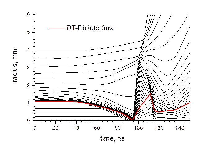 Моделирование полного сценария микровзрыва мишени и отклика камеры реактора на микровзрыв требует создания, по меньшей мере, двух различных гидродинамических кодов – одного для описания сжатия мишени, ее поджига и горения, и второго для описания разлета мишени, абляции первой стенки и взаимодействия встречных потоков вещества в камере. Это обусловлено принципиальным отличием физики процессов, протекающих на этих двух этапах, а также громадным отличием в них характерных масштабов времени, размеров, гидродинамических параметров и плотностей потоков массы импульса и энергии.