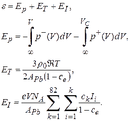 Термическое уравнение состояния включает в себя энергию взаимодействия между частицами неидеальной среды, тепловую энергию и энергию ионизации: