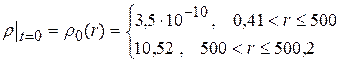 3. Давление в начальный момент времени определяется по заданным плотности и температуре согласно уравнению состояния.