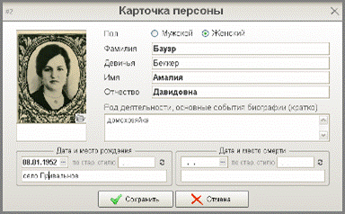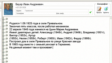 После заполнения «карточки персоны» этот член семьи появляется в общем списке персон семейной летописи.