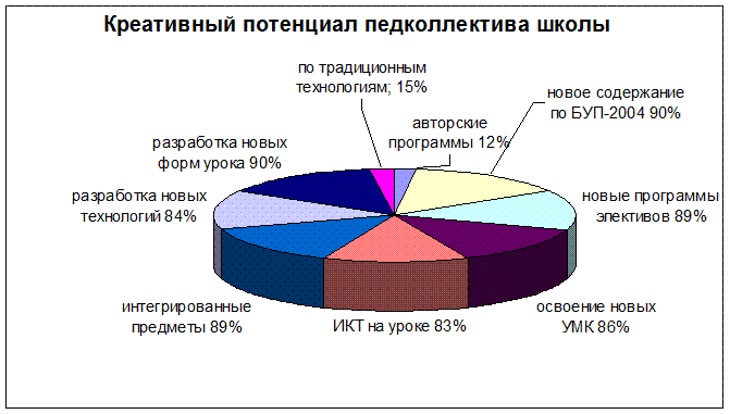 · апробация ряда модифицированных программ и новых УМК по профильным дисциплинам в 1 – 3, 5 – 6, 10 и 11 классах (новый БУП-2004)