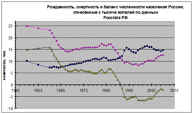 коэффициент рождаемости равен 10,3, смертности - 19, баланс составляет минус 8,7
