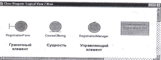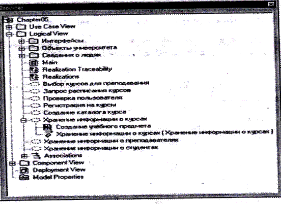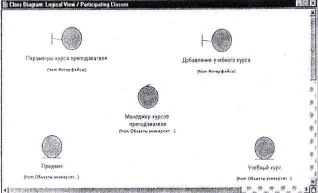 Продолжим анализ сценария добавление учебного курса (Add a Course Offering). Диаграмма показана на рис.24. Диаграммы классов могут быть также прикреплены к реализациям прецедентов. Они содержат представления классов, участвующих в выполнении прецедентов (participating classes).