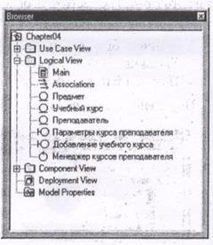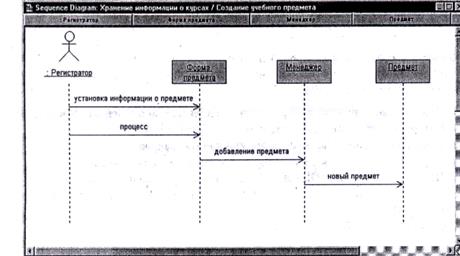 Окно браузера с диаграммой последовательности действий показано на рис.20. Чтобы создать объекты и сообщения на диаграмме последовательности действий в программе