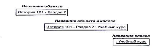 Названия объектов могут быть конкретными (например, Алгебра 101, раздел 1) или общими (например, учебный курс). Часто анонимные объекты используются для представления любого объекта данного класса.