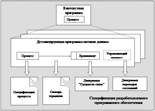 В рамках структурного подхода на этапе анализа и определения спецификаций используют три типа моделей: ориентированные на функции, ориентированные на данные и ориентированные на потоки данных. Каждую модель целесообразно использовать для своего специфического класса программных разработок.