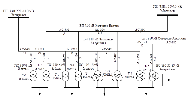 Исходными данными для проектирования являются схема района электрической сети, которая может быть взята по месту работы или практики, согласно рисунку 1.1, схемы подстанций в соответствии с рисунком 1.2.