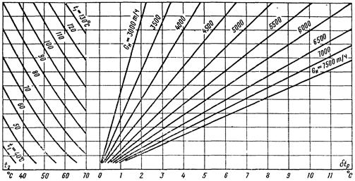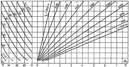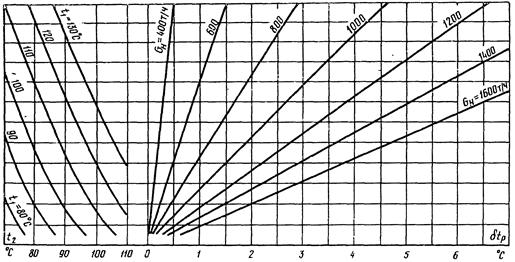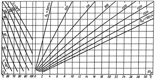 находим расчетный температурный напор, который для условий измерений составит dtp