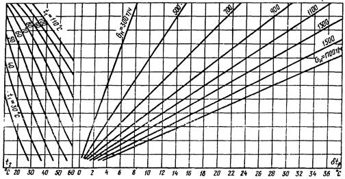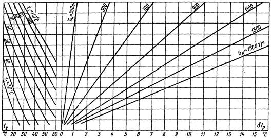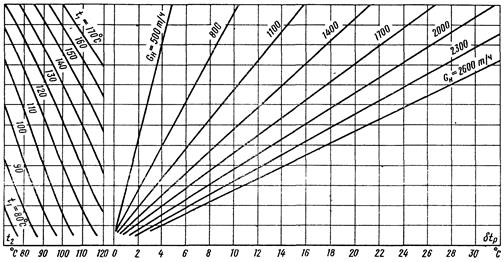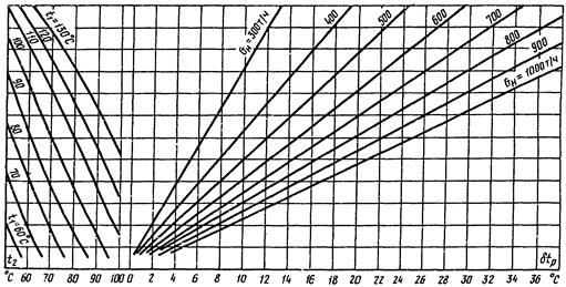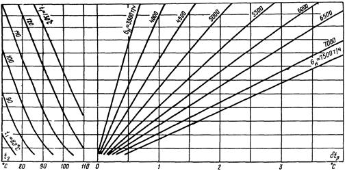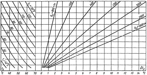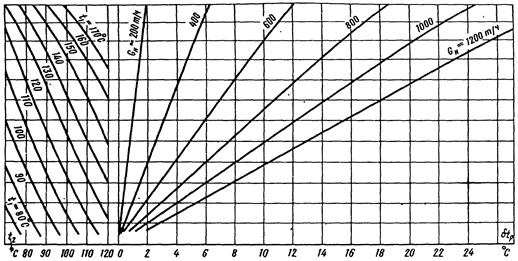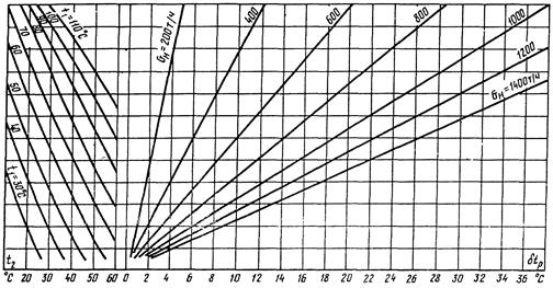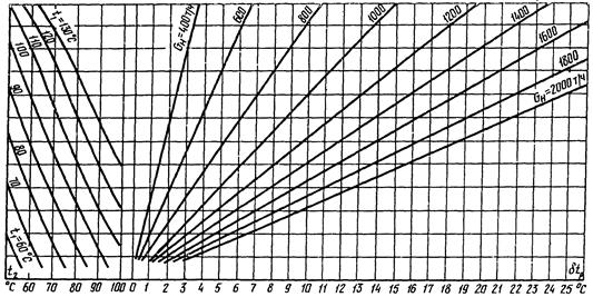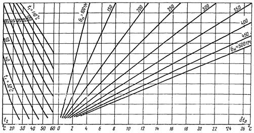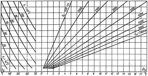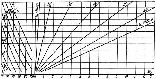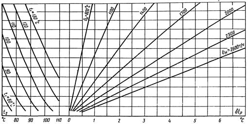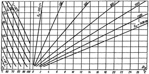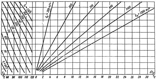 1.4. Расчетный температурный напор при чистой поверхности нагрева определяется по соответствующему графику (приложение 2) для режима работы, при котором проводились эксплуатационные измерения параметров.