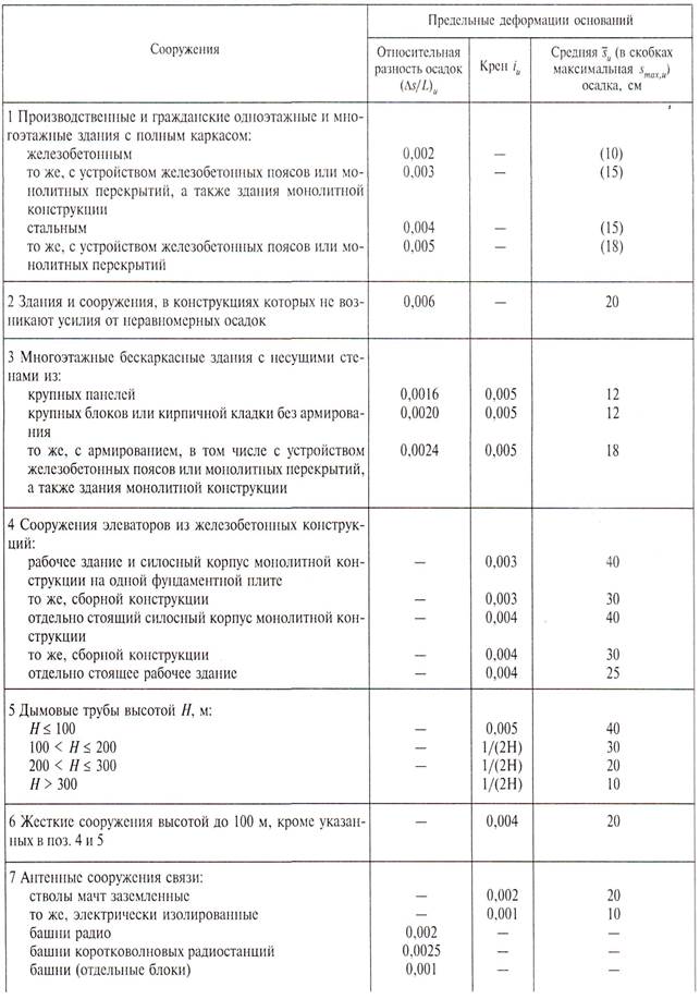 - чувствительность к неравномерным осадкам (определяется по приложению 3 в зависимости от конструктивных особенностей зданий);