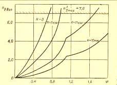 уменьшаются, т. к. уменьшается избыточность тела. Зависимость продольной перегрузки от высоты и скорости полета изображена на рисунке.