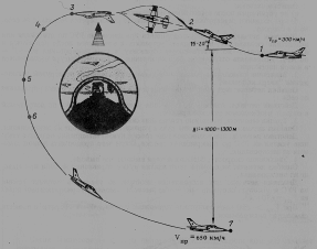 с последующим движением по нисходящей траектории в вертикальной плоскости и выводом в горизонтальный полет в направлении, обратном вводу.