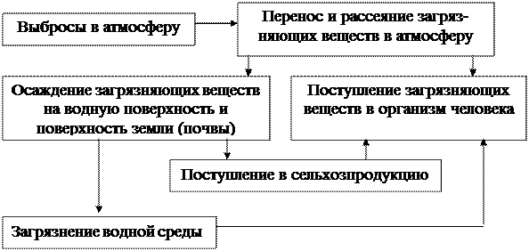 Схема воздействия атмосферных загрязнений на организм человека приведена на рисунке.