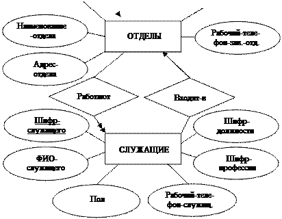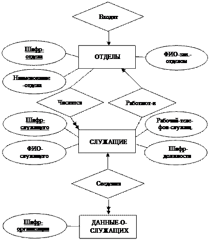 Логическую схему базы данных представляют в виде овал-схемы (овал-диаграммы), которая строится на основании всех возможных локальных представлений, с учётом модели пред-метной области.