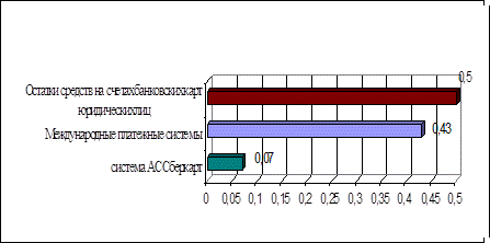 Рис. 5. Остаток денежных средств на счетах банковских карт юридических лиц на 01.01.06 г. (млрд. руб.)