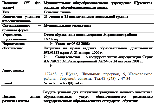 1. Введение. Общая характеристика МОУ Щучейская основная общеобразовательная школа.