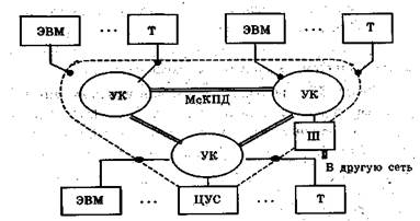 Условные обозначения: Т – терминал, УК – узел коммуникации, ЦУС – центр управления сетью