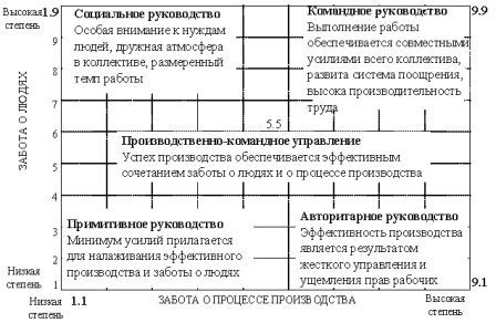 Каждый руководитель в процессе управленческой деятельности выполняет свои обязанности в свойственном только ему стиле. Стиль руководства выражается в том, какими приемами руководитель побуждает коллектив к инициативному и творческому подходу к выполнению возложенных на него обязанностей, как контролирует результаты деятельности подчиненных [1]. Принятый стиль руководства может служить характеристикой качества деятельности руководителя, его способности обеспечивать эффективную управленческую деятельность, а так же создавать в коллективе особую атмосферу, способствующую развитию благоприятных взаимоотношений и поведения. Степень, до которой управляющий делегирует свои полномочия, типы власти, используемые им, и его забота, прежде всего о человеческих отношениях или, прежде всего, о выполнении задачи - все отражает стиль руководства данного руководителя.