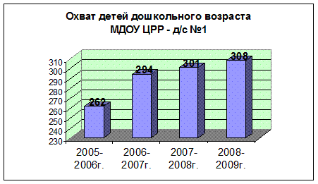 В 2008 - 2009 учебном году в МДОУ ЦРР - д/с №1 работало 12 групп, в которых воспитывалось 306 детей.