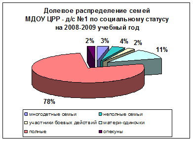 Диаграмма 2 показывает социальный статус семей нашего дошкольного учреждения, 78% детей имеют полную семью, что благотворно влияет на психическое, физическое, эмоциональное развитие каждого ребенка (диаграмма 2).