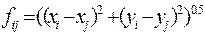 где , и , - координаты центров прямоугольников либо окружностей, представляющих соответственно i-й и j-й объекты в принятой системе координат.