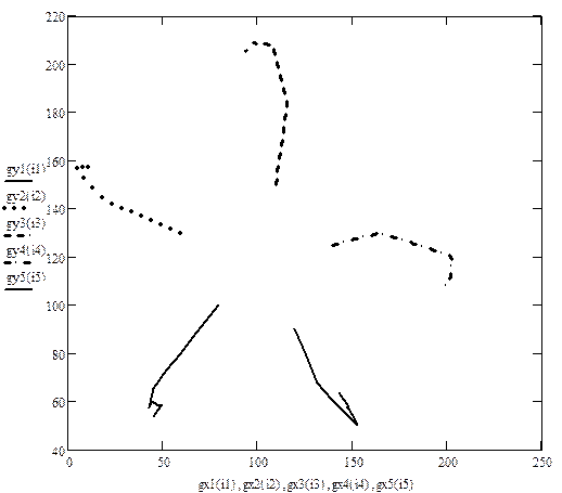 Рис. 2 Траектории движения центров объектов в ходе оптимизационного синтеза схем размещения объектов