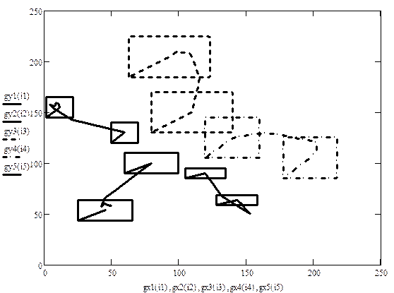 Рис. 3 Положения геометрических образов объектов при начальных и конечных значениях координат их центров