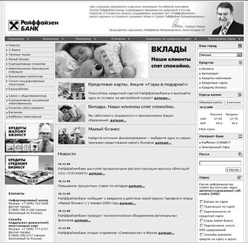 Вот приведен сайт компании во время кризиса. Персональное обращение с заглавной страницы сайта Председателя правления RaiffeisenInternational успокаивает и внушает доверие к банку.18