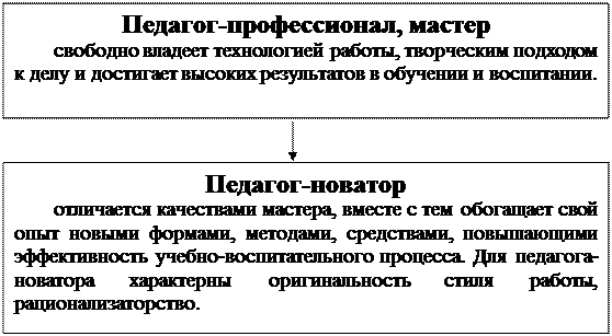 следует считать такой опыт, который опирается на проверенные практикой научные достижения, оказывает существенное влияние на совершенствование качества преподавания, повышение уровня знаний, умений и навыков, уровня воспитанности учащихся, не требует дополнительных затрат времени и сил учителя и учащихся, доступен для применения в различных условиях основной массой учителей (Федоров Г.В., Радионова Л.Г). 15