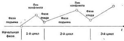 Динамика конфликта — ход развития конфликта по этапам и фазам. Инцидент — 1) внешнее открытое противоборство сторон, возникшее впервые; 2) стечение обстоятельств, являющихся поводом для конфликта. Институционализация конфликта — установление четких норм и правил конфликтного взаимодействия, определение рабочих групп и комиссий по управлению конфликтом.