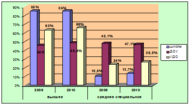 2010 год, объявленный в России Годом учителя, стал периодом обновления сферы образования в рамках Национальной образовательной инициативы «Наша новая школа». Ключевыми характеристиками «нового» общего образования в городе остаются: новый учитель, открытость для семьи и общества, иная школьная инфраструктура, формирование здорового образа жизни школьников, поэтапное изменение организационно-правовых форм муниципальных образовательных учреждений.