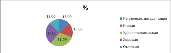 Низкую физиологическую сопротивляемость стрессу имеют 16% пятиклассников. Данный фактор подразумевает особенности психофизиологической организации ребенка, снижающие его приспособляемость к ситуациям стрессогенного характера, повышающие вероятность неадекватного, деструктивного реагирования на тревожный фактор среды.