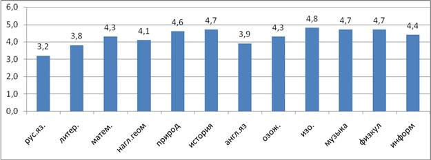 Пятиклассникам предлагалось выразить свое отношение ко всем учебным предметам. Предлагаемые предметы нужно было оценить как "5" - предмет очень нравится; "4" - предмет нравится; "3" - предмет безразличен; "2" - предмет не нравится; "1" - предмет очень не нравится.