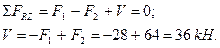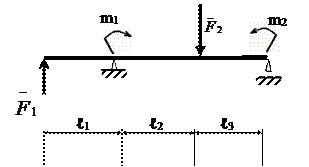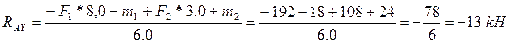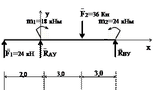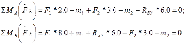 1 Составляем уравнение равновесия параллельной системы сил, из которых определяем опорные реакции балки: