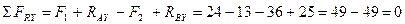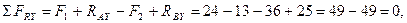 Проверяем правильность определения опорных реакций, составляя сумму проекций всех сил на ось У: