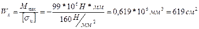 =99 кНм. Из условия прочности балки на изгиб вычисляем необходимый осевой момент сопротивления: