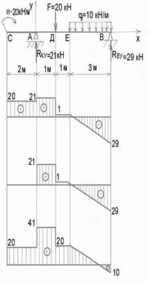 По найденным значениям строим эпюру изгибающих моментов М (рисунок 8 в).