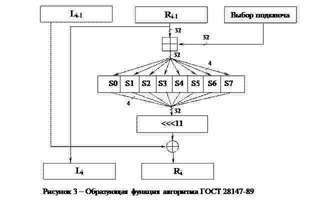 При шифровании блок открытого текста разбивается на две равные части - левую и правую. Очевидно, что длина блока при этом должна быть четной. На каждом цикле одна из частей подвергается преобразованию при помощи образующей