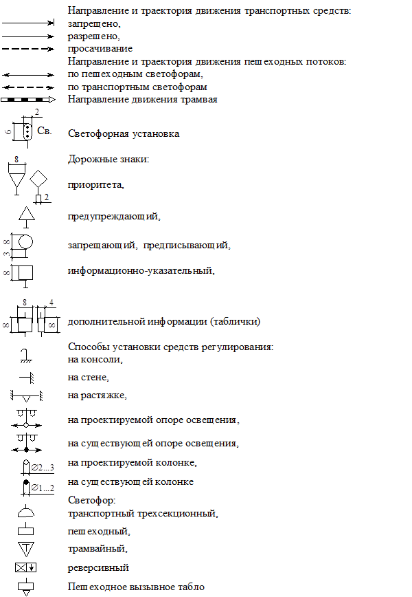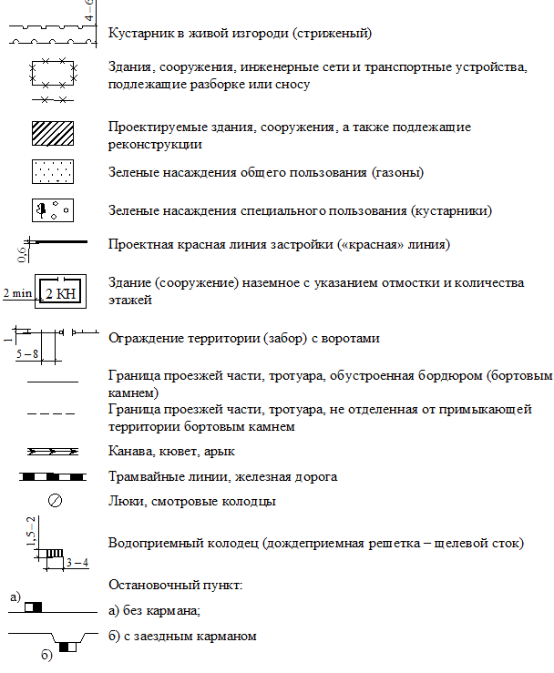 Обозначения на плане-схеме (М 1:500 и 1:1000)