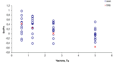 Рисунок 9 – Распределение спектральных отношений S/P для района полигона Похаран