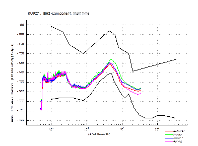 Оценка параметров сейсмического шума по станции «Курчатов-Крест» свидетельствует о хороших возможностях этой станции для мониторинга сейсмических событий различной природы. Уровень спектральной плотности сейсмического шума близок к нижнеуровневой мировой модели сейсмического шума.