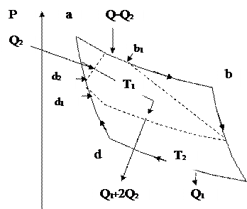 осуществляется без ввода тепла. Тепло вводится в начале расширения при постоянстве давления Р1
