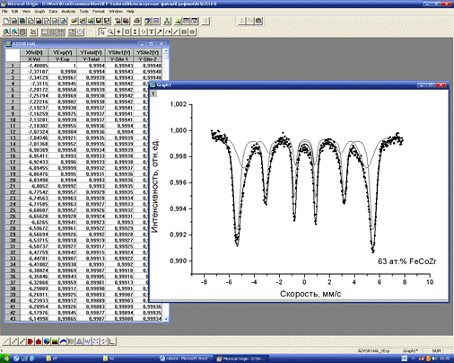 Таким образом, целью данной работы является анализ подходящих компьютерных программ и рассмотрение процесса проведенной с помощью них последовательной обработки данных, полученных в результате ЯГР-спектроскопии, для описания структуры и некоторых свойств нанокомпозиционных материалов FeCoZr-Al2