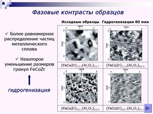 Изменение структуры и свойств нанокомпозиционных материалов возможно как путем вариации размеров и формы наночастиц при синтезе (изменением методики и условий синтеза), так и применяя различные виды обработки образцов (отжиг, гидрогенизация и т.п.).