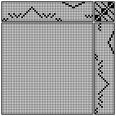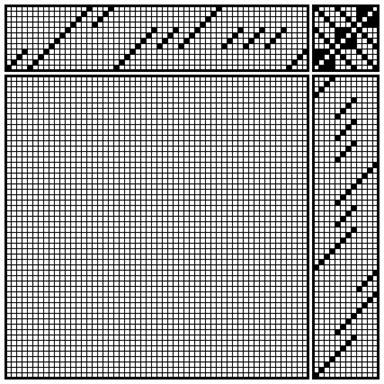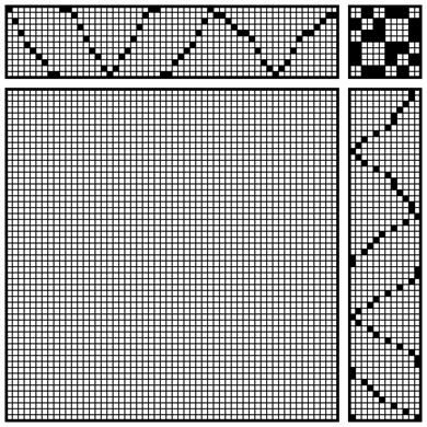 3. Изучить метод построения крупнораппортных узоров путем сочетания разноцветной пряжи и переплетения. Построить цветной узор при следующих данных: раппорт снования три нити: две белые, одна чёрная: раппорт цвета по утку состоит из четырех нитей: одна белая, три чёрные; переплетение — 4-ремизный неправильный сатин