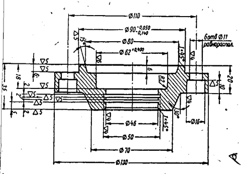 2. По эскизу детали (рис. 3) разработайте эскиз отливки с модельно- литейными указаниями, приведите эскизы модели, стержневого ящика и собранной литейной формы (в разрезе). Опишите последовательность изготовления формы методом ручной формовки и методом литья по выплавляемым моделям. Дайте сравнительную характеристику этих методам.