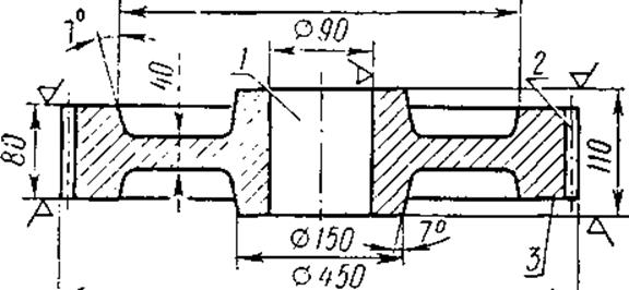 2. По эскизу детали (рис. 4) разработайте эскиз отливки с модельно- литейными указаниями, приведите эскизы модели, стержневого ящика и собранной литейной формы в разрезе. Опишите последовательность изготовления формы методом ручной формовки. Опишите процесс получения отливки методом центробежного литья. Дайте сравнительную характеристику этих методов.