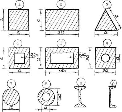 1) подобрать размеры поперечного сечения стержня из условия устойчивости, пользуясь таблицей коэффициентов продольного изгиба φ.