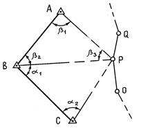 9. Схемы определения неприступных расстояний и применения угловых засечек при создании съемочного обоснования.
